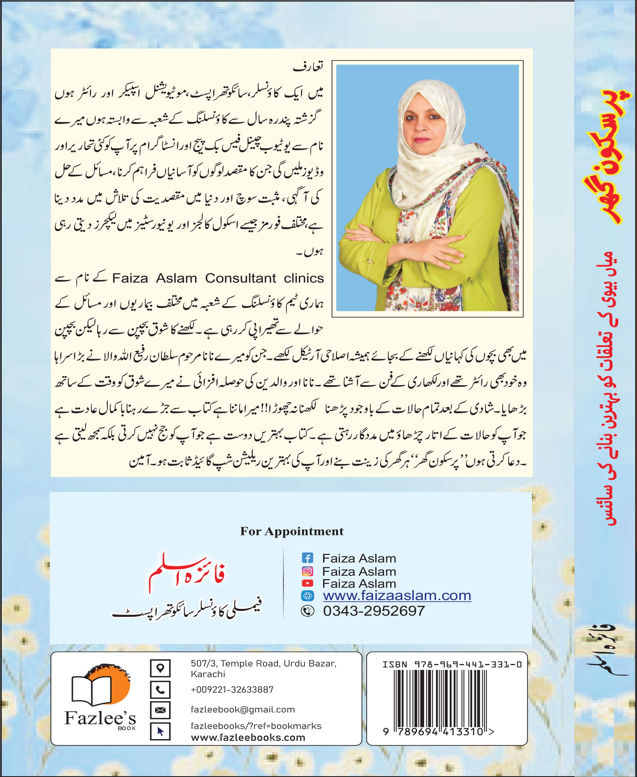 پرسکون گھر فائزہ صاحبہ کی 15 سالہ کاونسلنگ اور ریلیشن شپ کوچنگ کے تجربات کا نچوڑ ہے جس میں ایم بی ٹی آئی ٹیسٹ کو شامل کیا گیا ہے جس نے اس کتاب کی افادیت کو دگنا کر دیا ہے۔